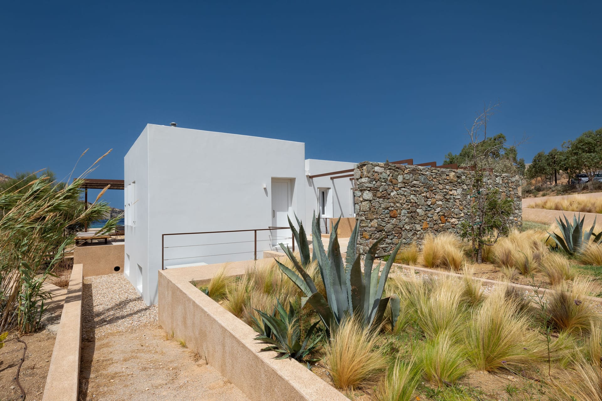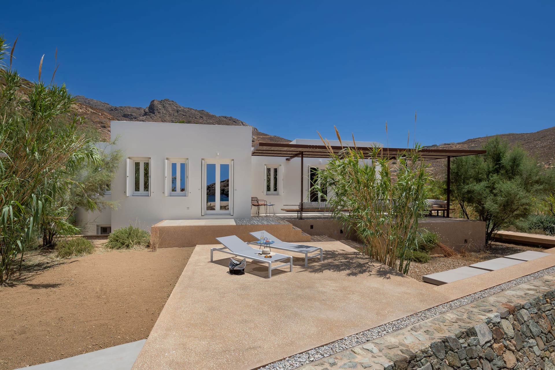 Our luxury villa is located right in front of the sandy Vagia Beach. Just step out of the villa and soak your feet in the sand.