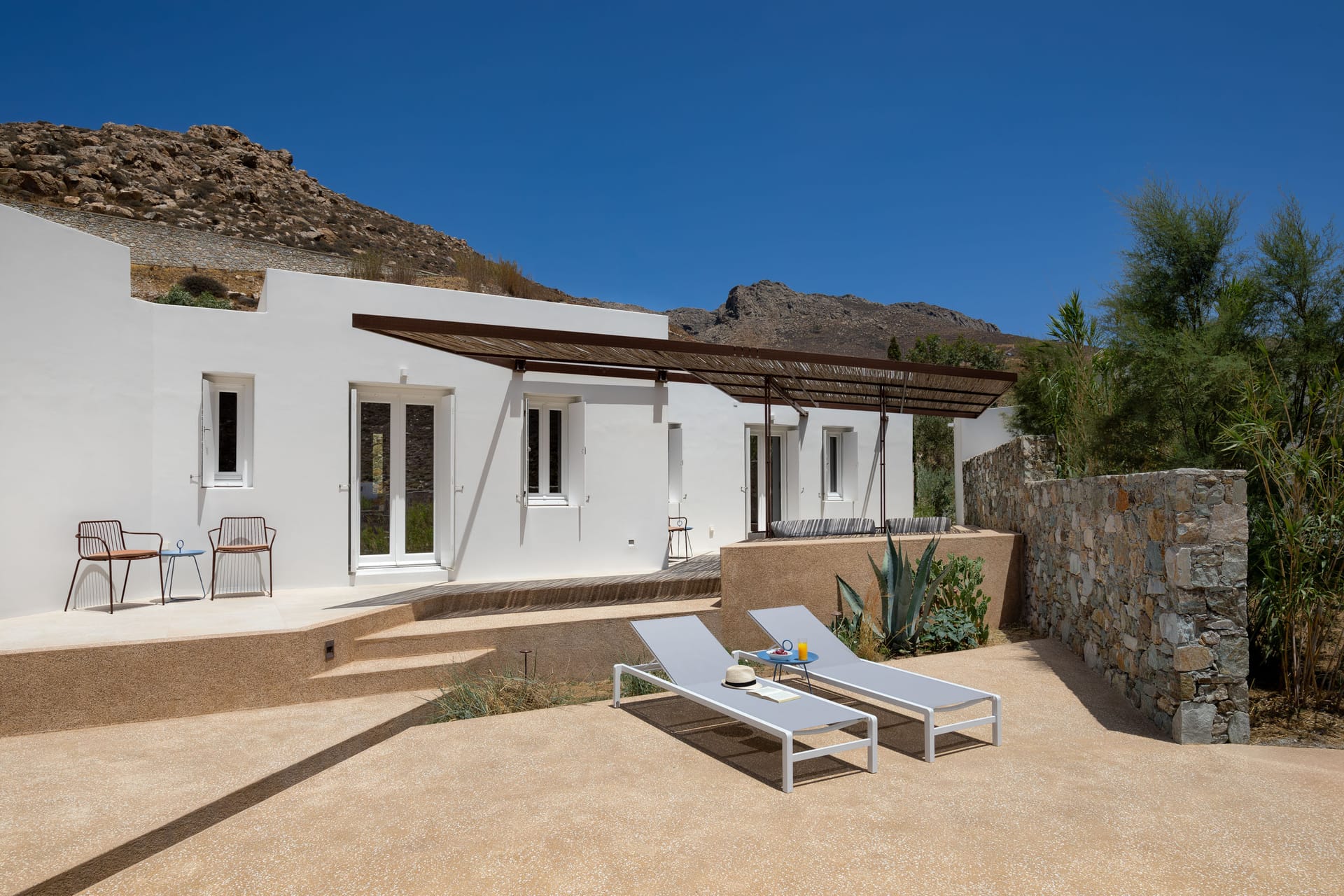 Our luxury villa is located right in front of the sandy Vagia Beach. Just step out of the villa and soak your feet in the sand.