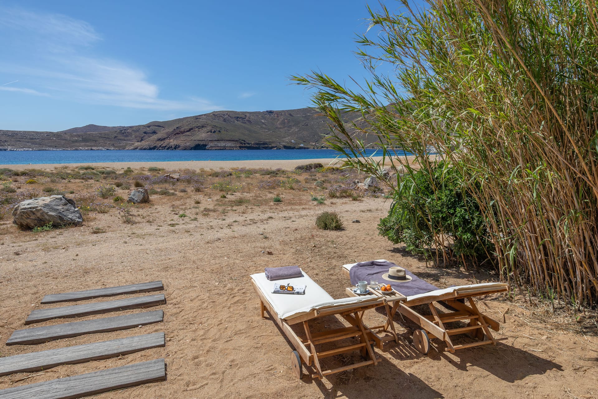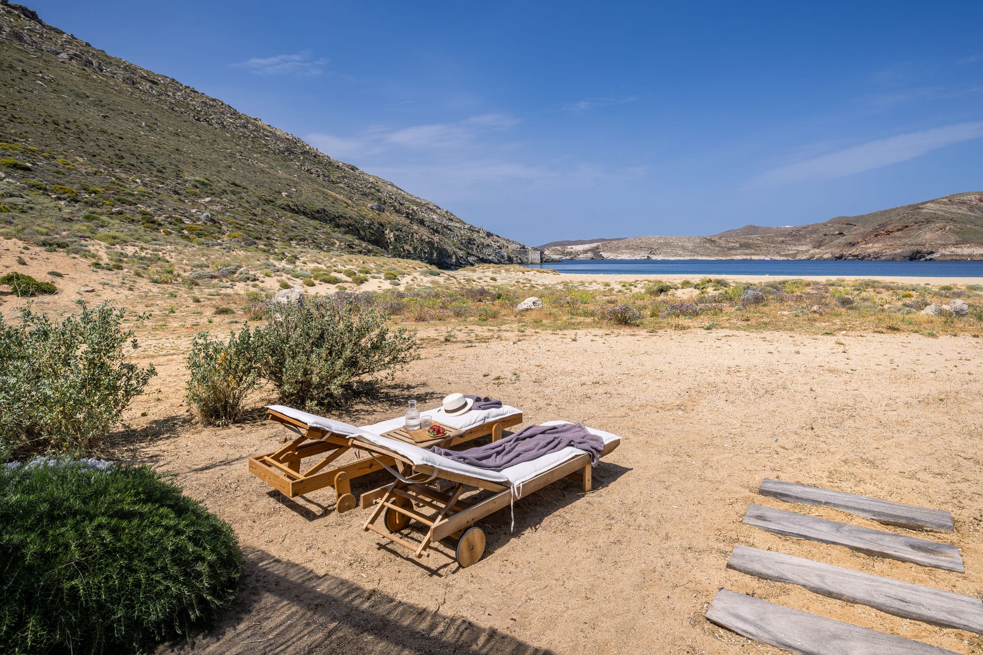 - Outdoor wooden sunbeds
