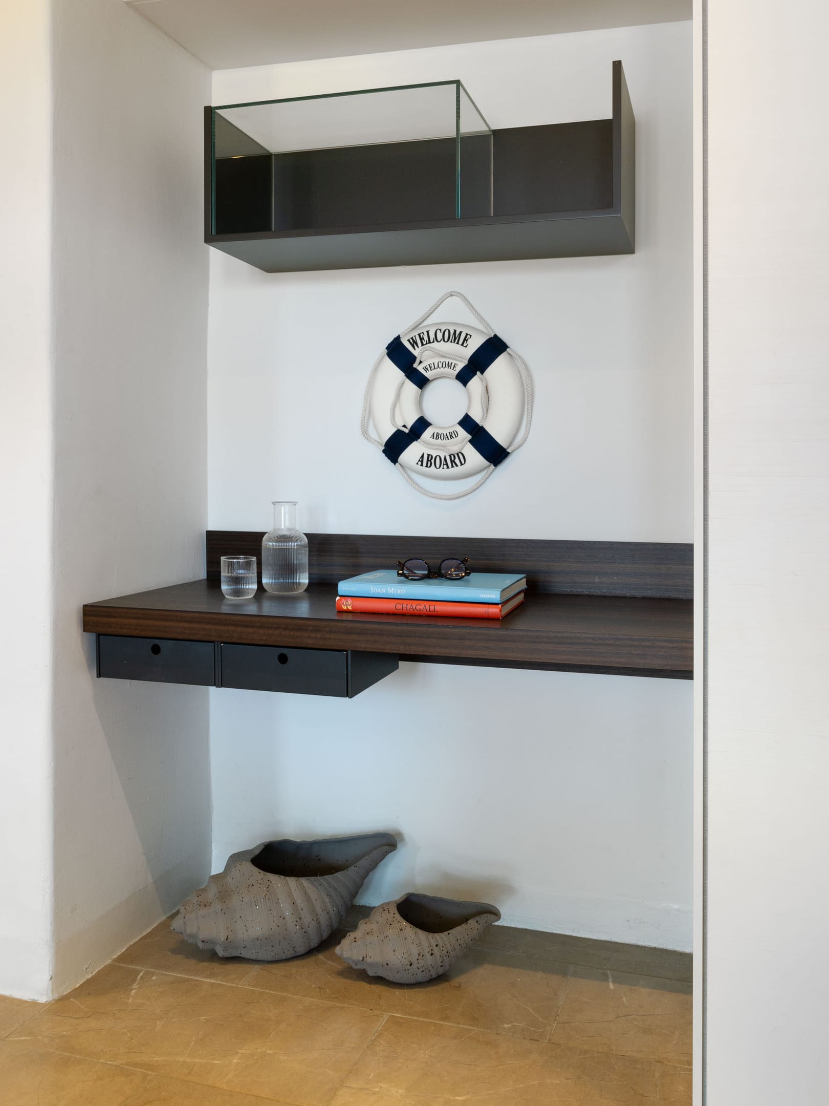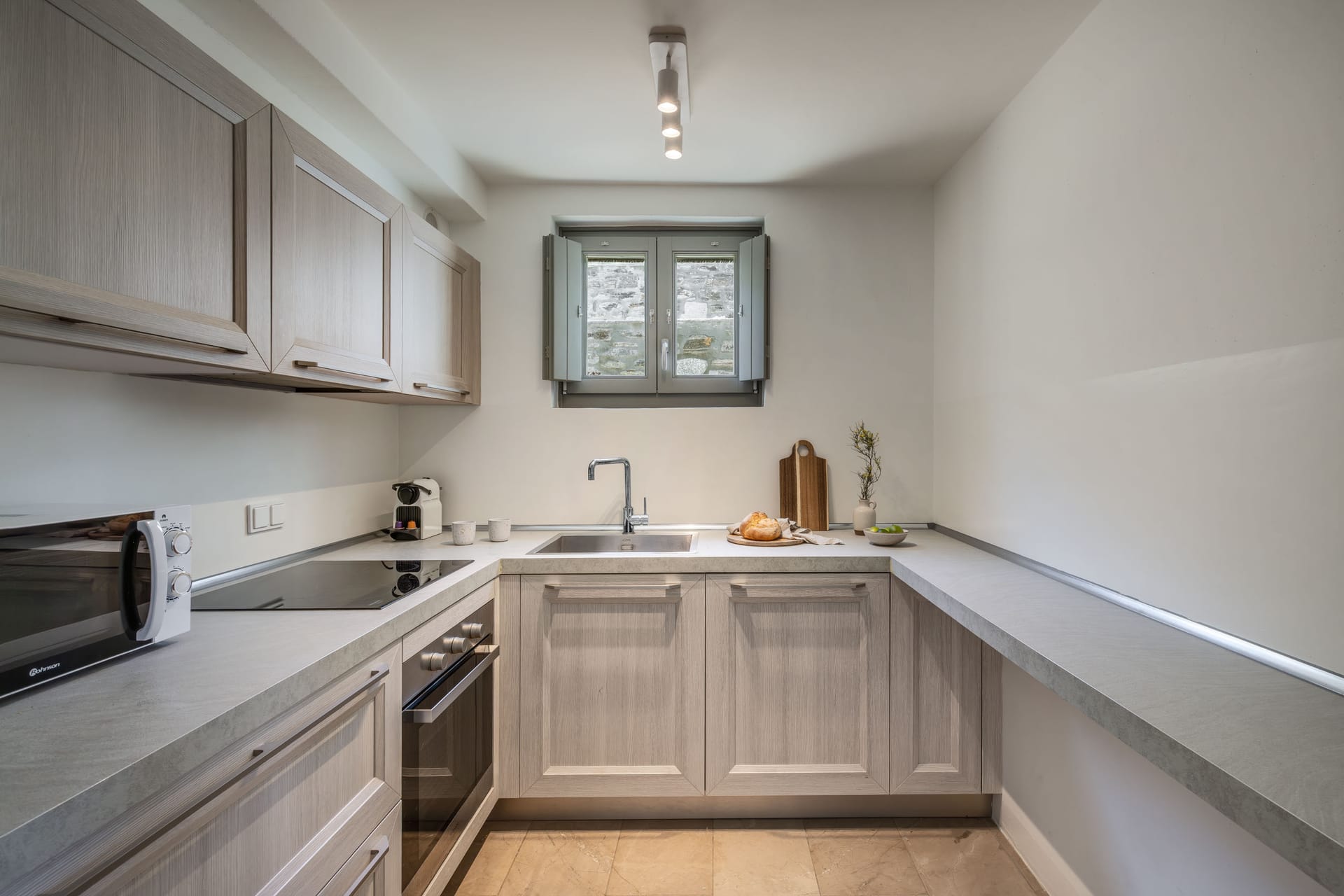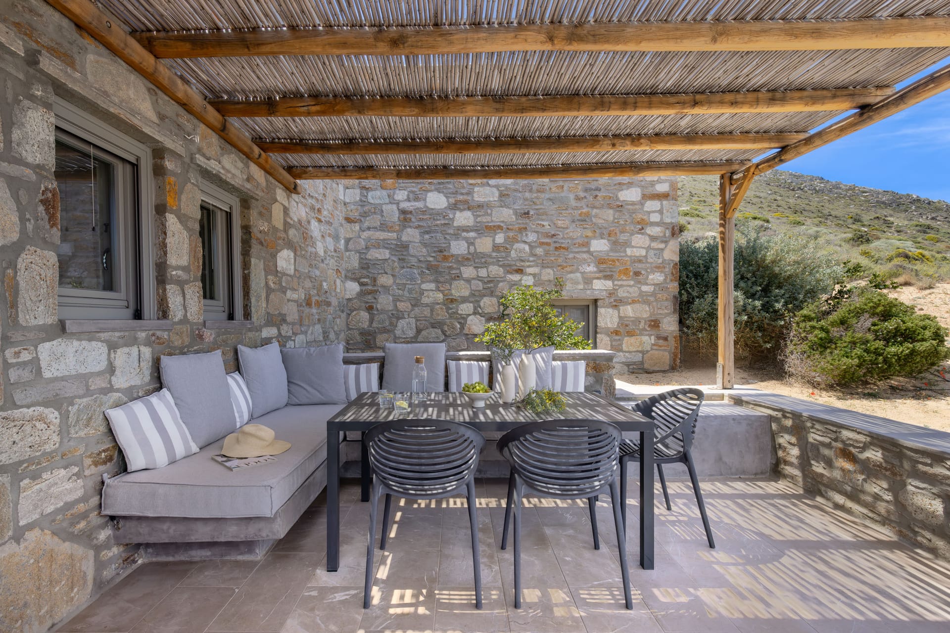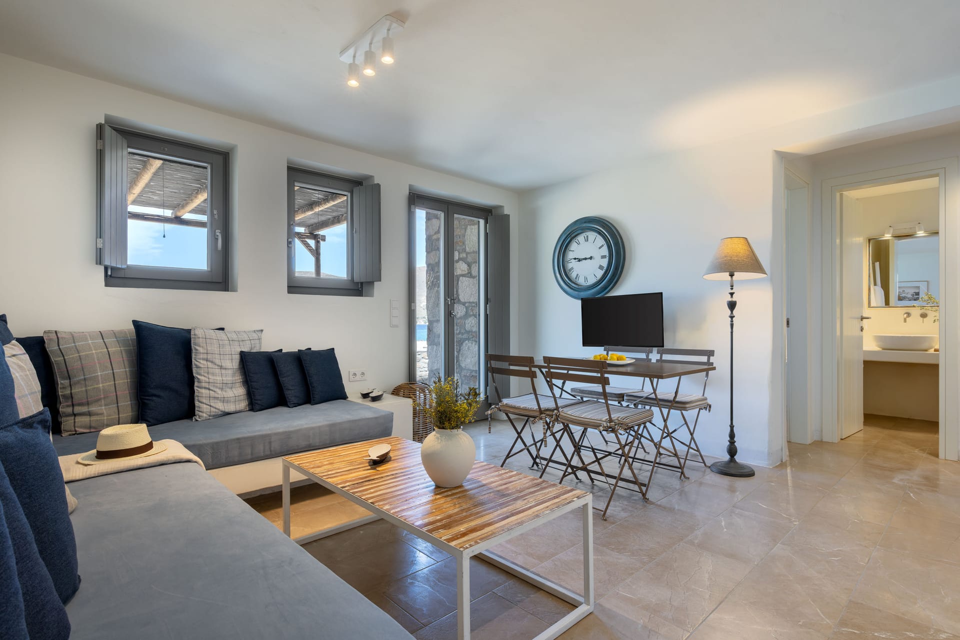 1 Bathroom, 1 Double Bedroom with an excellent quality mattress, Fully equipped kitchen with a dish washer, living room, Flat TV, Maid Service Daily, Wi-Fi Free internet Access, Air-condition, Linen change every 3 days (unless requested otherwise), Espresso Machine, a sea side private porch with pergola - sofa & a large dining table, 2 sun beds.
